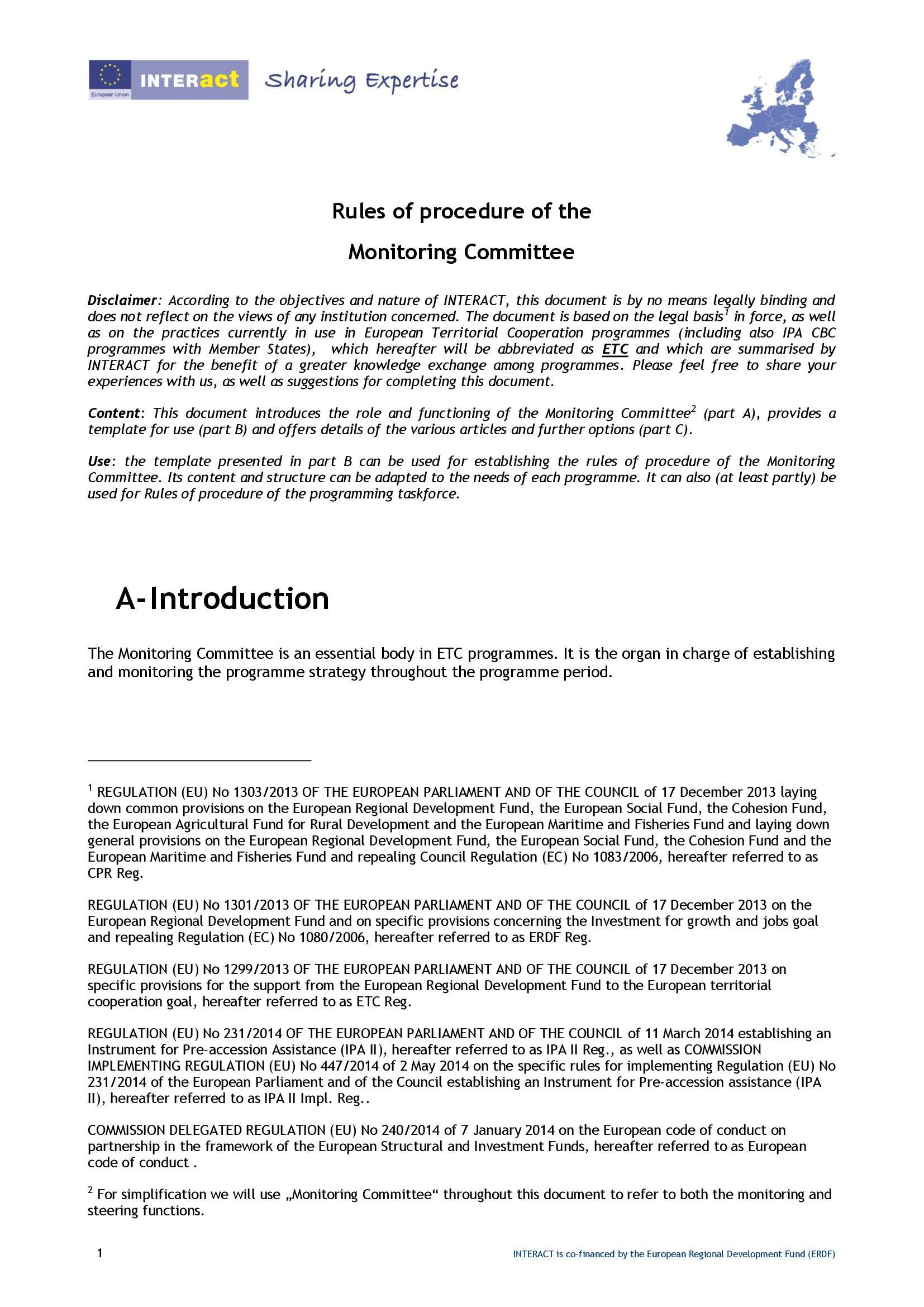 Guidance Paper | Rules of procedure of the Monitoring Committee